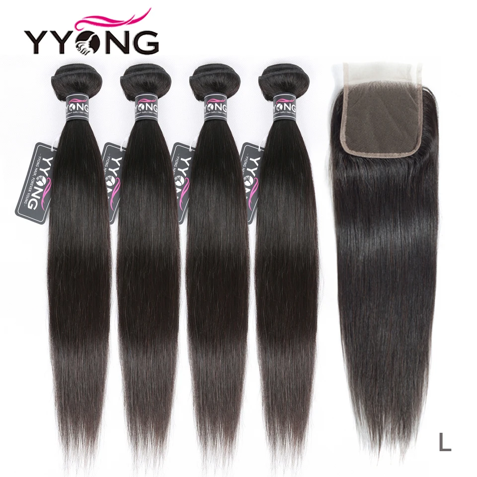 Hot deal Yyong Straight Hair Bundles With Closure 4 Pieces Peruvian Human Hair Weave With Lace Closure Remy