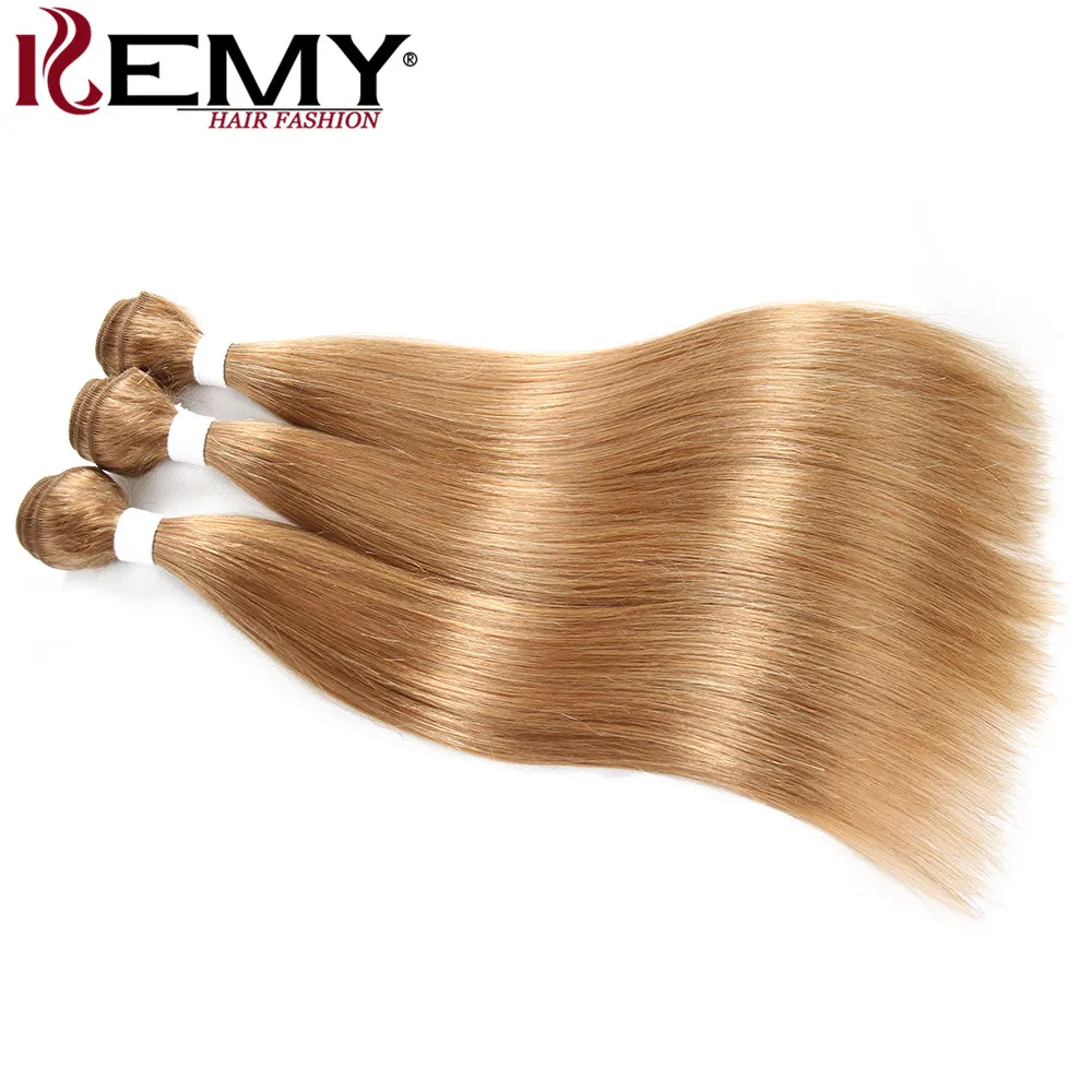 Light Brown Hair Bundles 27# KEMY HAIR Pre-Colored Brazilian Straight Human Hair Weave Bundles Non-Remy Hair Extension 2/3/4PCS