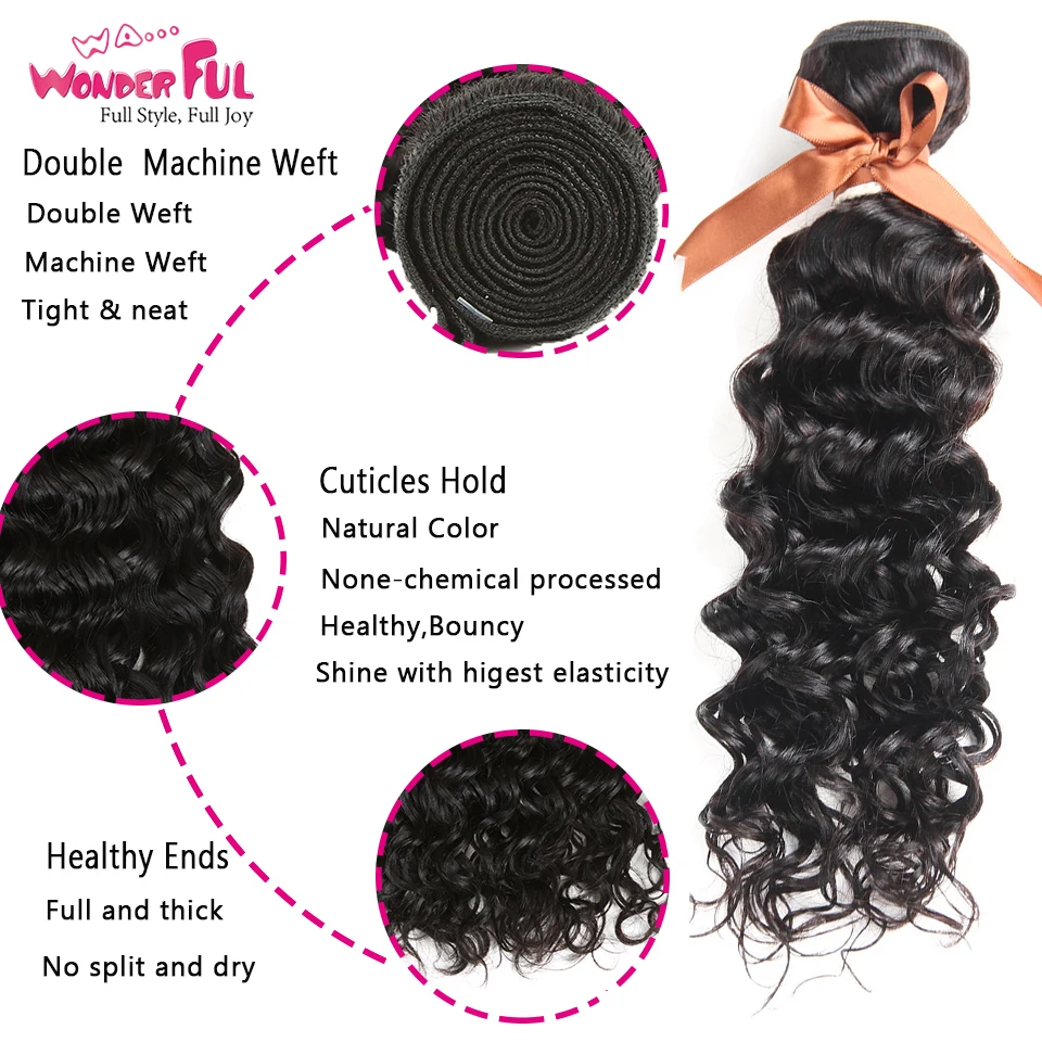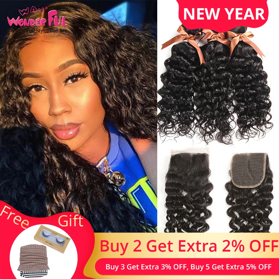 Wa...Wonderful Brazilian Hair Weave Bundles With Closure Remy Human Hair 3 Bundles With Closure Wat