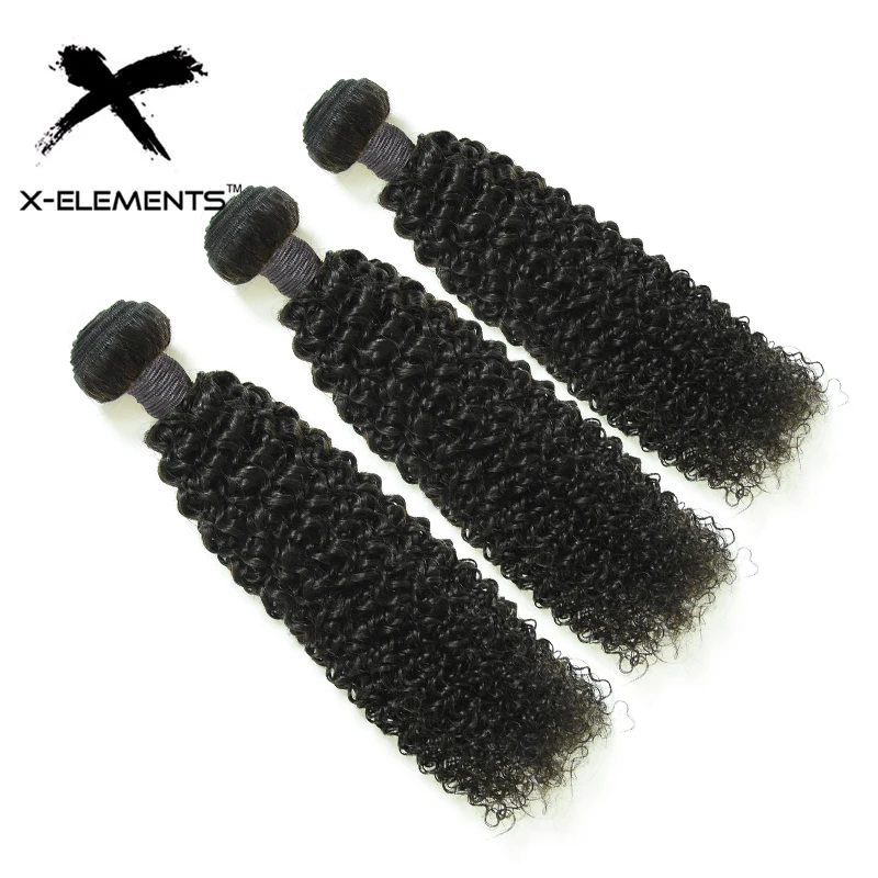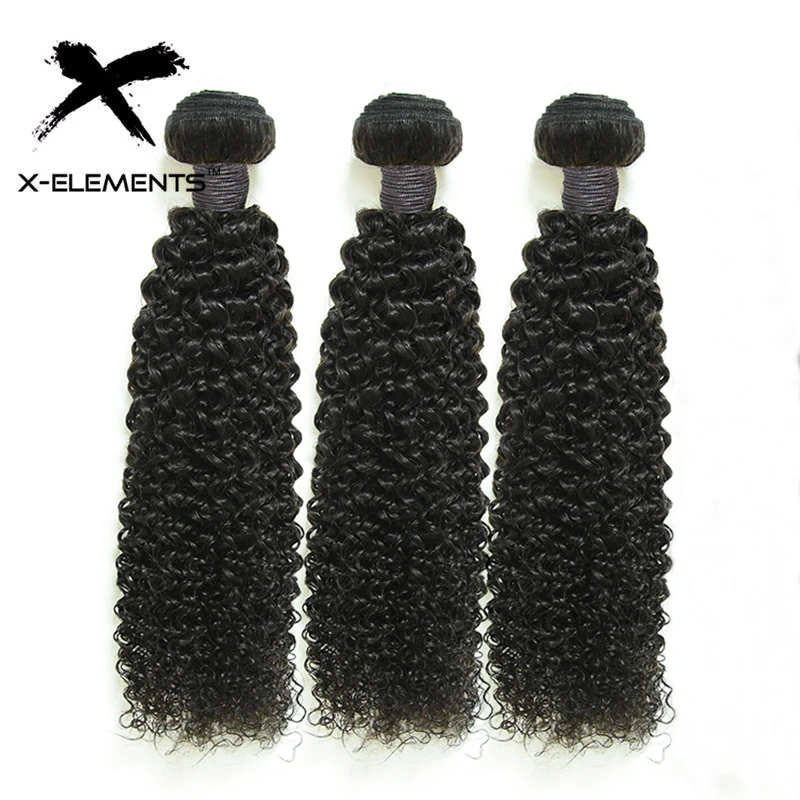 X-Elements Brazilian Kinky Curly Hair Bundles 1/3/4 Pcs Remy Human Hair Weave Bundles 8-28 Inch Natural Color Hair Extensions